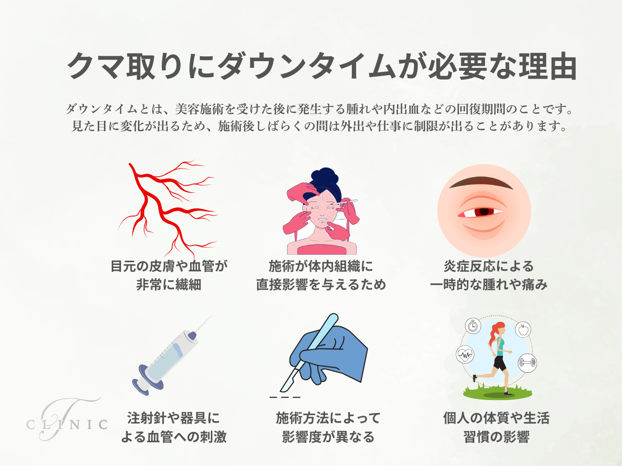 - なぜクマ取り施術にダウンタイムが伴うのか